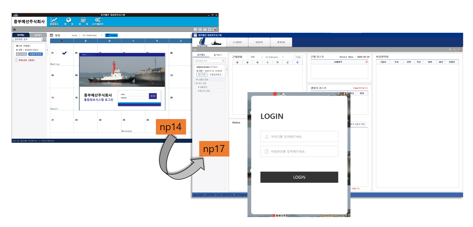 예선통합정보시스템은 넥사크로 14(및 고도화된 17 버전)를 기반으로 구축된 해운 물류 특화 패키지. 예선 작업의 '신청-배정-운항-정산'의 전 과정을 디지털화